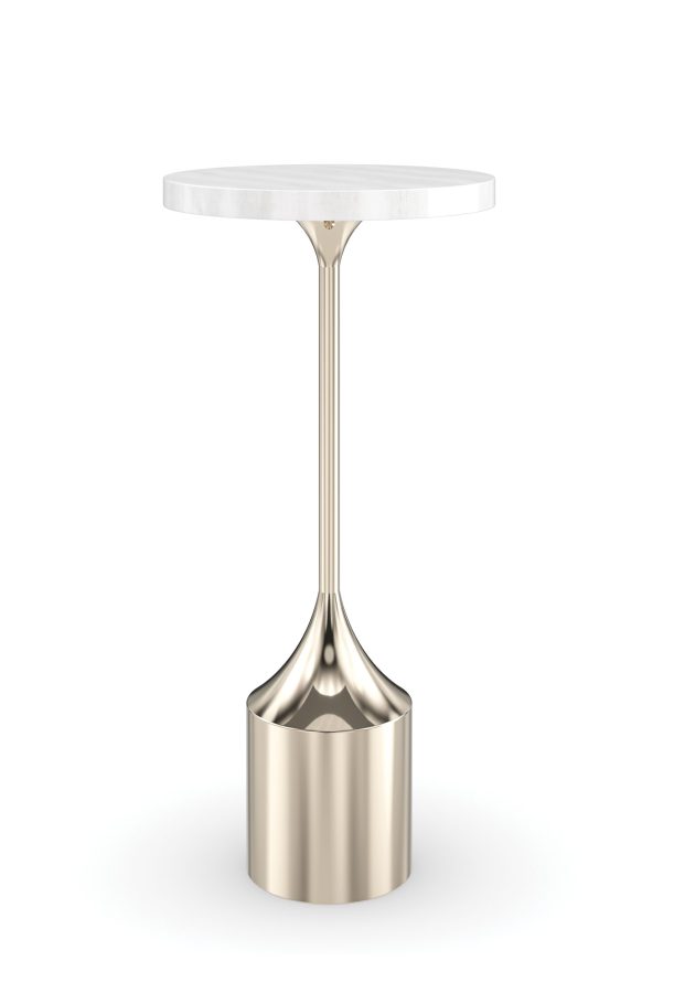 Product Description: Caracole CLA-023-421 Beta Spot Table - A nod to the streamlined style of a mid century candlestick, this spot table is well-scaled for reading nooks and larger spaces designed for entertaining. Its white stone top lends soft contrast to a sculptural metal frame with a sturdy base in a Whisper of Gold. Designed to pair with our Alpha and Gamma accent tables to create composition, or style solo for ease of use and convenience.