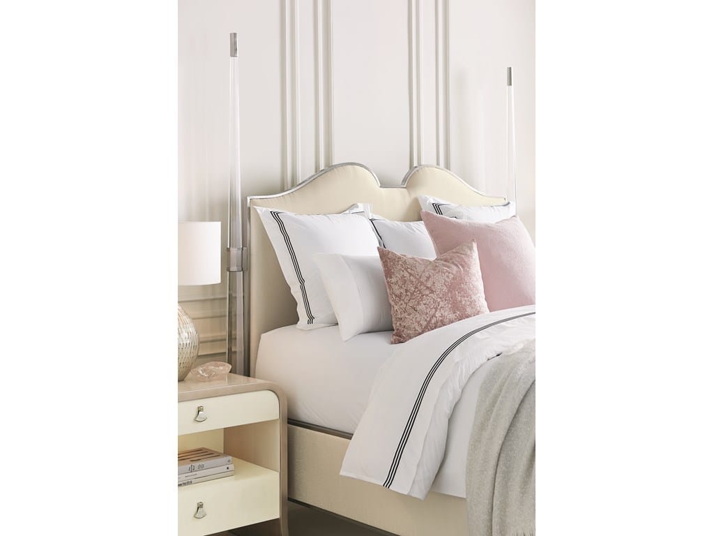 Product Description: Caracole CLA-417-121 Caracole Classic The Post Is Clear King - Statement-making by design, this fashion-forward king bed juxtaposes modern, clear acrylic bed posts with the rich elegance of an exquisitely upholstered headboard, footboard and rails. The perfect mix of masculine and feminine, its broad appeal will satisfy all purveyors of design. Metal ferrules and a Lightly Brushed Chrome finish add a finishing touch.