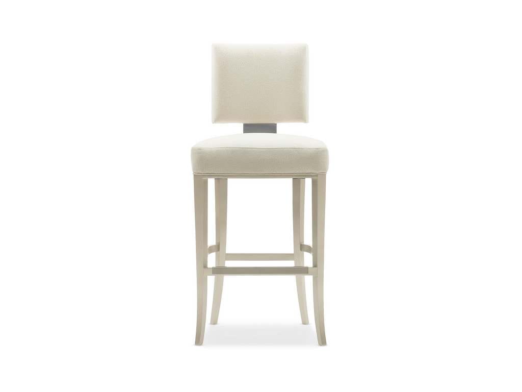 Product Description: Caracole CLA-420-304 Caracole Classic Seating Bar Stool - Update the look of your dining area with the pure sophistication of this chic bar stool and you'll never want to be anywhere else. Its contemporized shape is fully upholstered in a soft neutral and features a floating square back connected by a metal support finished in shimmering Lightly Brushed Chrome. An ideal addition to any bar-height island or table, it's framed in a Soft Silver Paint finish that lets its elegant character reflect the light from every vantage.