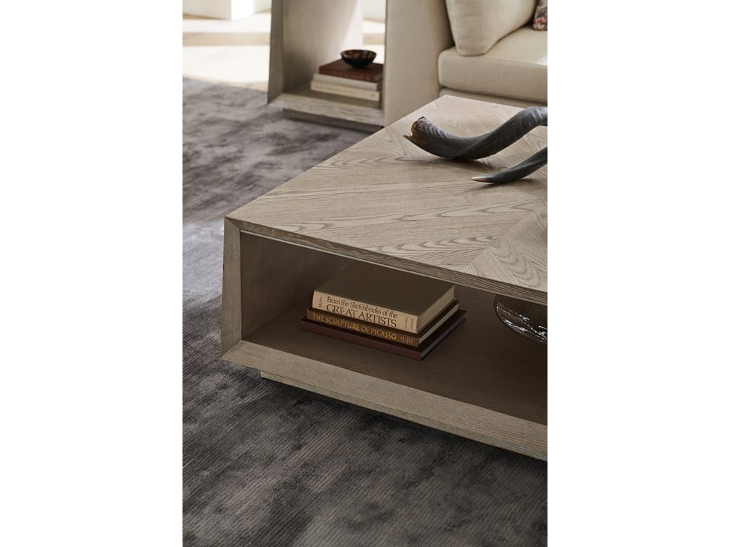 Product Description: Caracole CLA-420-4012 Caracole Classic Cocktail Table - As the center of your conversation area, the Boxcar cocktail table lends authentic warmth and character. Its clean geometric lines are brought to life with the organic beauty of Ash Driftwood veneers formed in an artistic alternating pattern across the tabletop. Designed with an open storage area, this cocktail table's timeless form is bolstered by thoughtful functionality-creating just the place to stow magazines or a favorite knitted throw. Highlights of a Sundance Gold finish peek through in metal accents that add another layer of luxe.