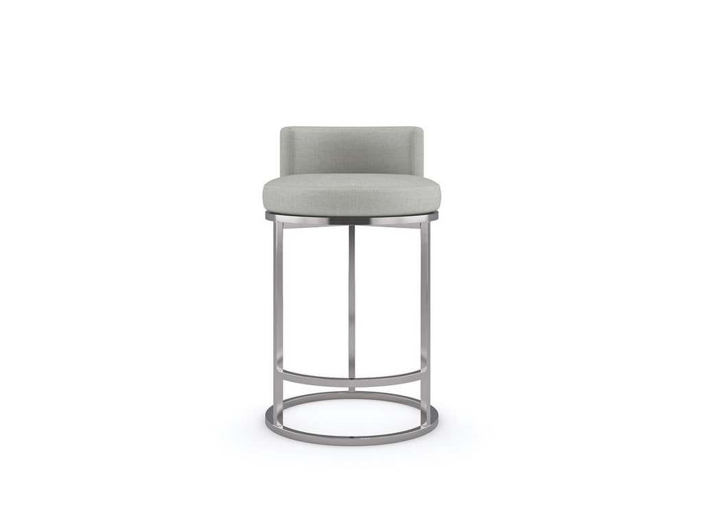 Product Description: Caracole CLA-421-311 Caracole Classic Straight Up Counter Stool - A sleek modern design that balances comfort and style, this swiveling counter stool is made for dining and daily rituals, from conversations over coffee to late-night work sessions. Perfectly poised on a minimalist metal base, it features a curvy back and seat upholstered in a worry-free performance fabric. Set at just the right height, a 6.5"-high foot rest lets you swivel with ease. Pull up to a counter, or pair with a stand-up desk for sit-down comfort.