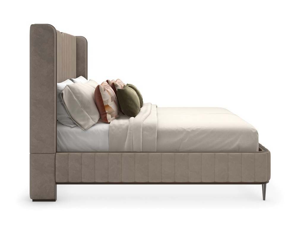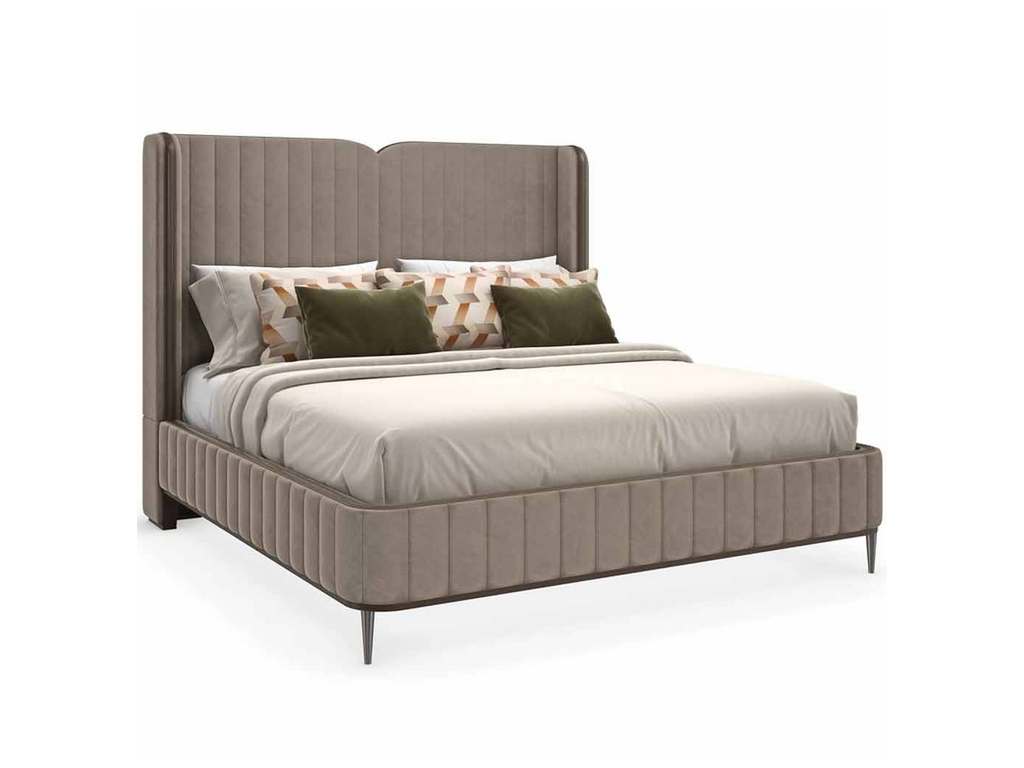 Product Description: Caracole CLA-422-123 Continuum King Bed - At the height of luxury, this masterfully upholstered bed makes an indulgent statement in a smooth, low-pile velvet. Vertical channel tufting goes uninterrupted, except for a slight dip at the center of the headboard for a hint of drama and artistic expression. Dark Chocolate wood trim adds a defining accent and rich contrast, complemented by tapered metal legs along the front in a Deep Bronze finish.