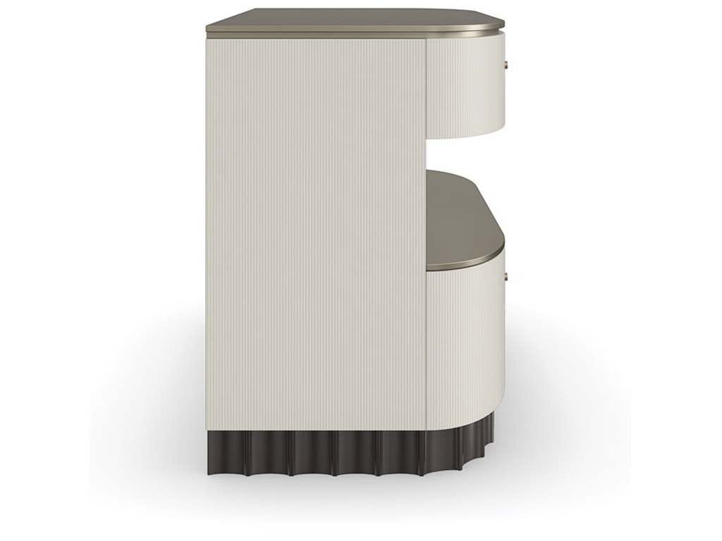 Product Description: Caracole CLA-423-063 Deep Sleep Bedside Table - Designed with the utmost attention to detail, this bedside table celebrates the timeless beauty of neoclassical architecture. Features two drawers with soft corners and vertical micro fluting in Ivory paint, separated by open space for bedside storage and display. A Brushed Whisper of Gold on top adds warmth and a note of luxe, accentuated by an overscaled fluted base in a richly contrasting, Dark Chocolate finish.