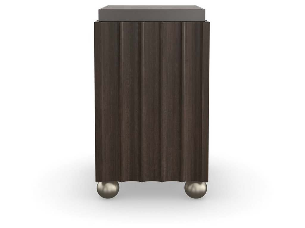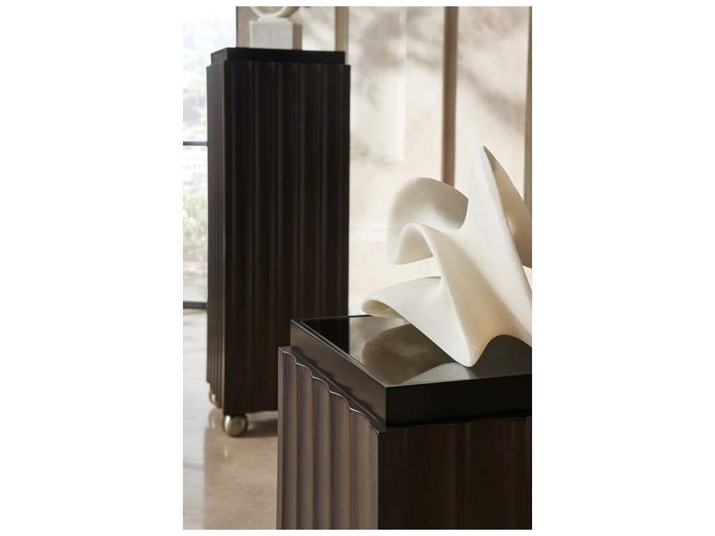 Product Description: Caracole CLA-423-812 Next To You Small Spot Table - Small spot table or decorative pedestal, this simple yet sculptural form takes inspiration from Greco-Roman architecture. Defined by a fluted column, it features an inset Bronze Glass top framed in Dark Chocolate, and metallic ball feet in a Brushed Whisper of Gold for a hint of shimmer and ease of mobility. Style alongside a sofa or chair, or pair with Up To You to create a multi-dimensional, gallery-like display.