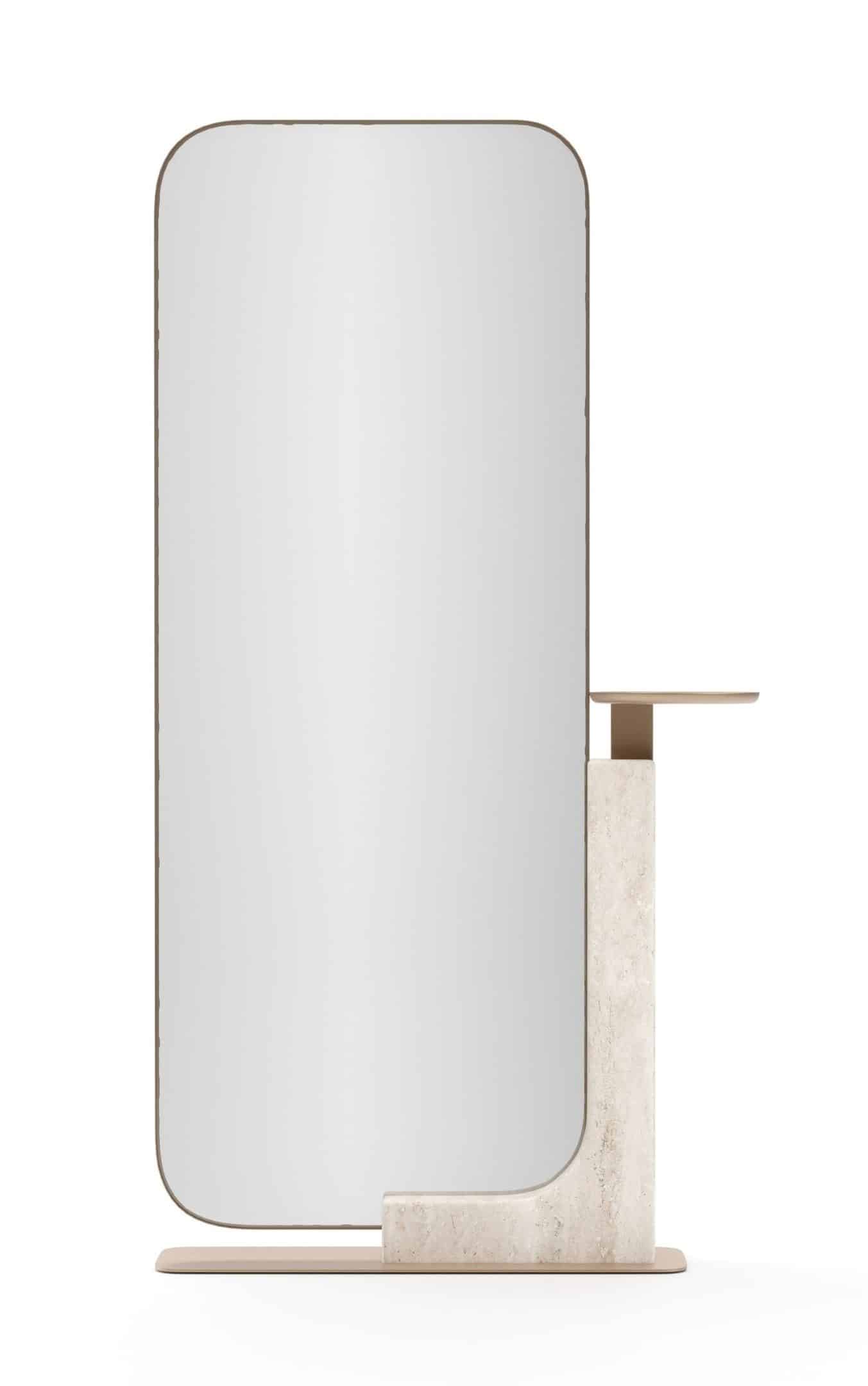 Product Description: Caracole CLA-425V-044 Overlap Floor Mirror Light - Elevate your interior with the refined charm of the Overlap Floor Mirror Light. Beautifully framed in luminous Whisper of Gold, this freestanding mirror brings radiant elegance to any space. Supported gracefully by a distinctive stand of unfilled Travertine stone, each mirror showcases natural variations, offering a truly unique aesthetic. Perfectly balancing modern sophistication and classic luxury, this piece is an effortless addition to any stylish home.