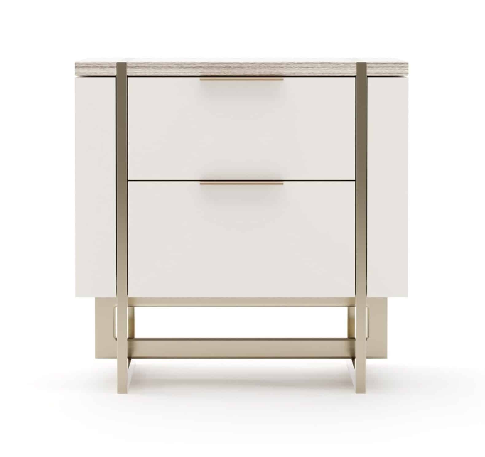 Product Description: Caracole CLA-425V-0613 Wish You Were Here Nightstand - Infuse your bedroom with timeless elegance through the Wish You Were Here Nightstandùan inspired companion piece to a beloved Caracole bestseller. Its luxurious Sandstone marble top complements a softly finished Almond Milk case, effortlessly enhanced by the shimmering Whisper of Gold metal base and hardware. Two spacious drawers, featuring interiors in Almond Milk, offer seamless functionality wrapped in understated sophistication.