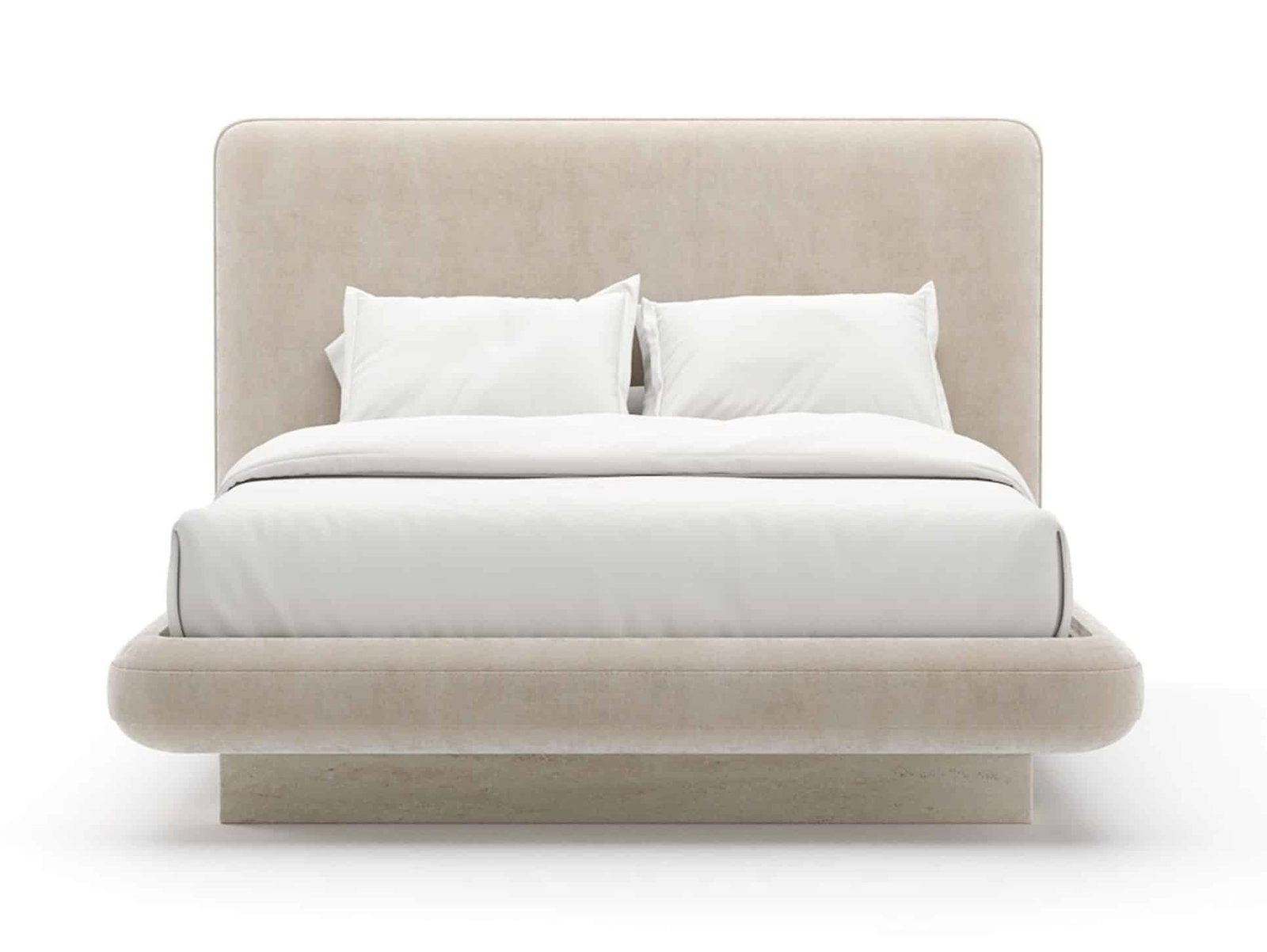 Product Description: Caracole CLA-425V-101 Overlap Uph Qn Bed Ivory - Transform your bedroom into a serene sanctuary with the Overlap Upholstered Queen Bed in ivory vintage velvet. Wrapped in luxurious upholstery and detailed with delicate Whisper of Gold metal accents, this bed is anchored by an elegant unfilled Travertine stone base, offering an inviting retreat where peaceful nights and stylish mornings seamlessly blend.