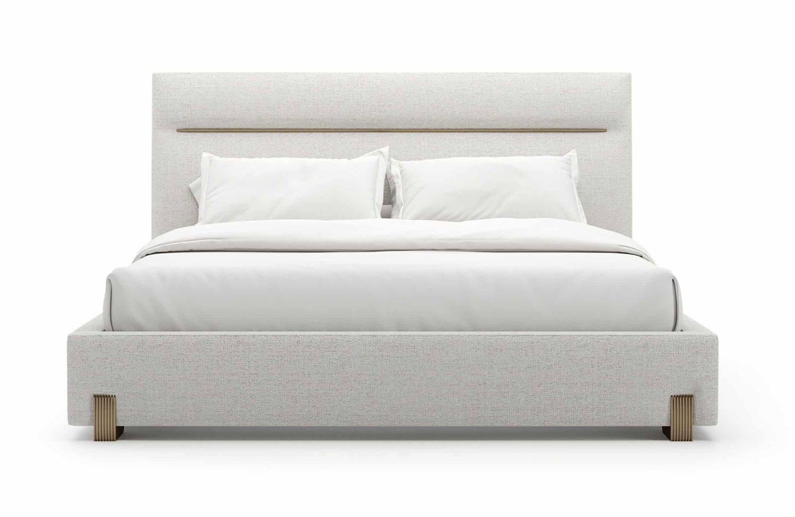 Product Description: Caracole CLA-425V-122 Counter Balance King Bed - Discover serene luxury with the Counter Balance King Bed. It's sumptuous upholstery in oatmeal melange woven fabric with subtle rust threading and striking Brushed Gold metal feet promise a restful sanctuary wrapped in refined comfort.