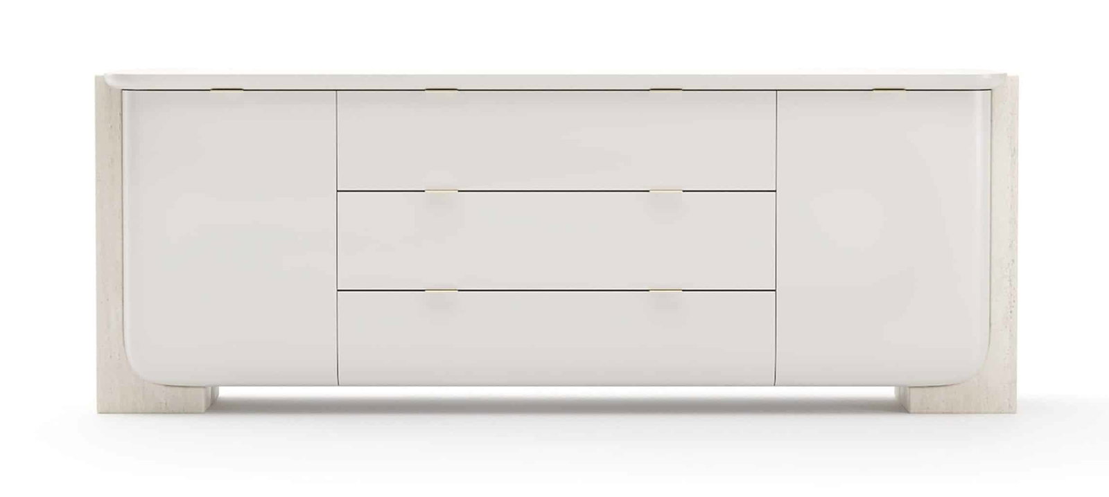 Product Description: Caracole CLA-425V-2512 Overlap Sideboard Light - The Overlap Sideboard Light features a top finished in Latte, and striking stone side panels crafted from unfilled Travertine, marrying refined elegance with functionality.