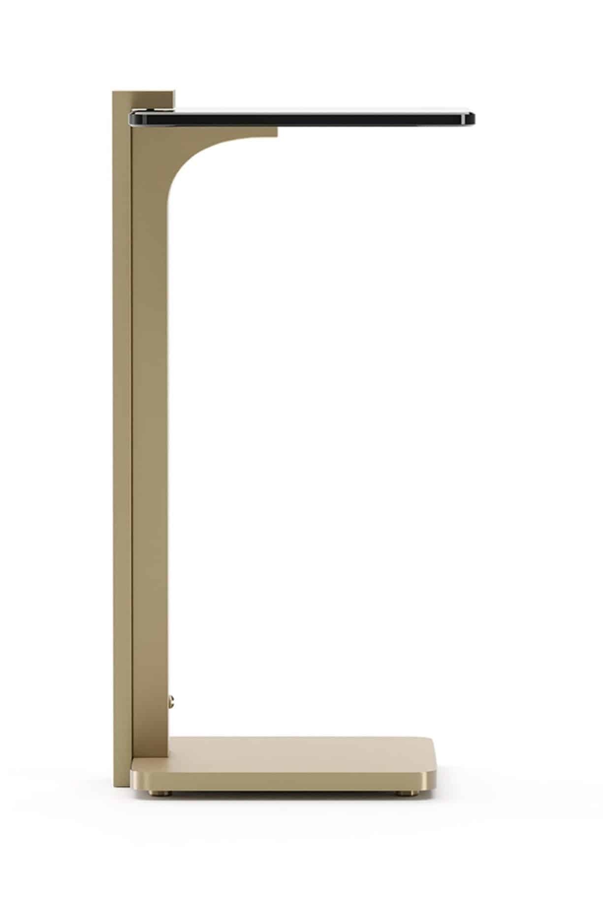 Product Description: Caracole CLA-425V-422 Counter Blance Spot Table - Exquisitely poised, the Counter Balance Spot Table adds a delicate sparkle with its Smoked Bronze glass top set upon a graceful Brushed Gold frame, creating a subtle yet captivating presence.