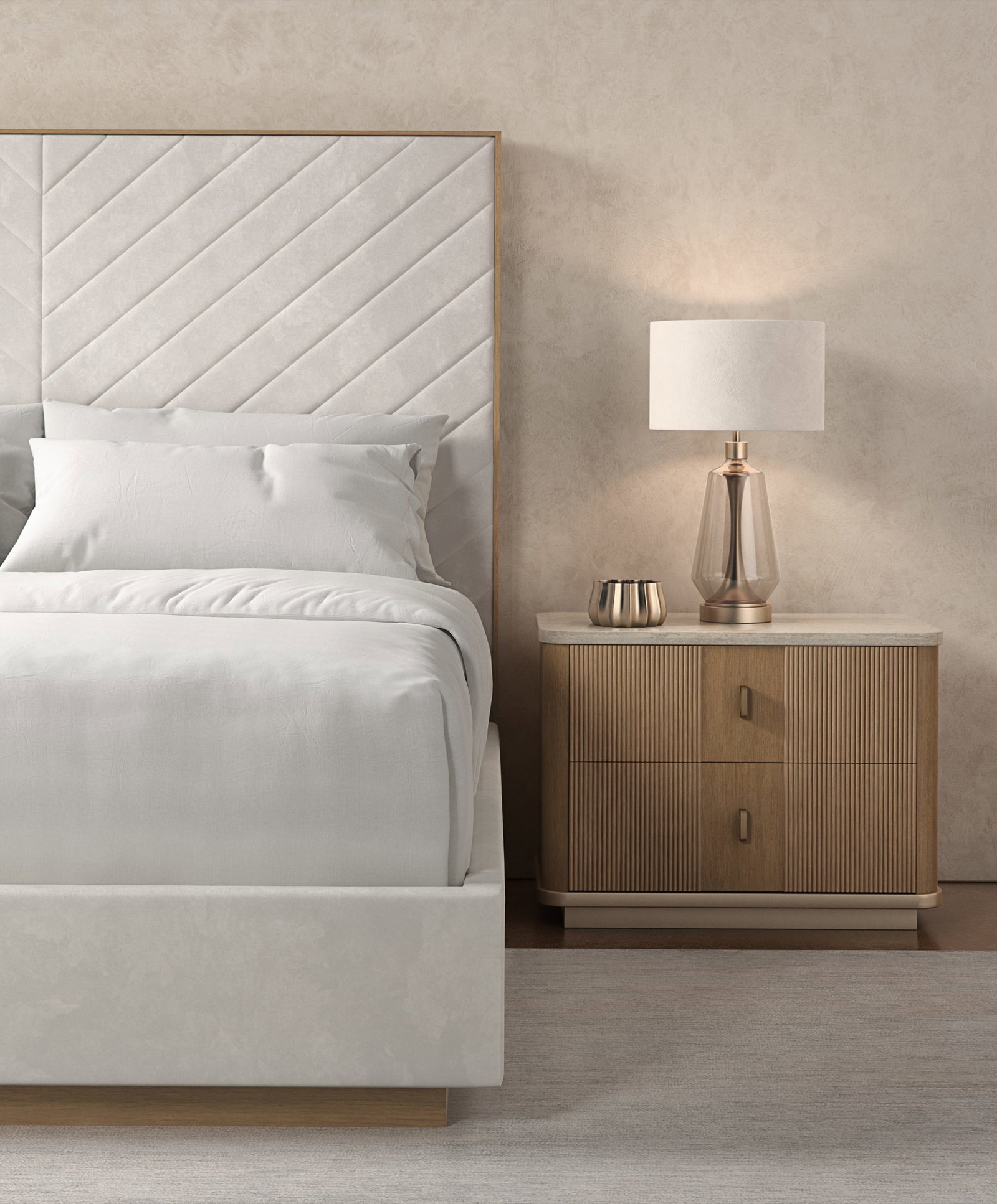 Product Description: Caracole CLA-5423-102-C Meet U In The Middle Queen Bed - Queen bed with a split headboard design for a modern look. Sturdy construction for durability. Perfect for creating a chic bedroom retreat.