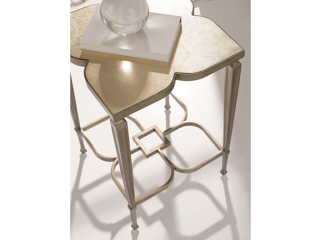 Product Description: Caracole con-acctab-018 Caracole Classic Lucky Charm Accent Table - Destined to be a winner, our four-leaf clover shaped 16 x 16-inch table surface boasts a subtly metallic Taupe Silver Leaf finish and sits atop elegant, slender metal legs. Odds are good that there is a sofa, upholstered chair or chaise that will benefit from having this special little accent table nearby.