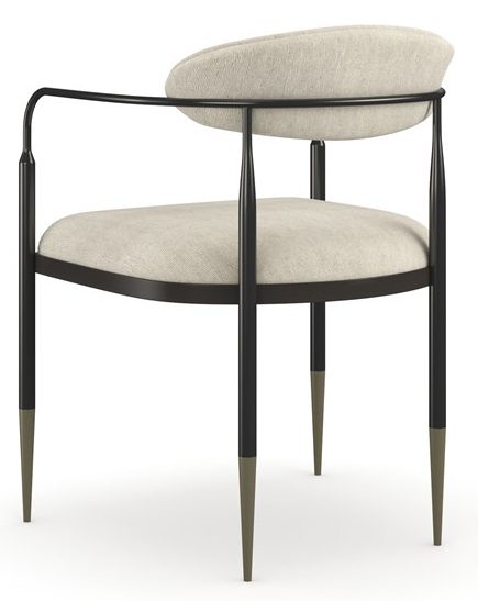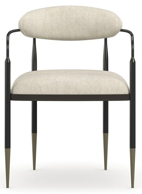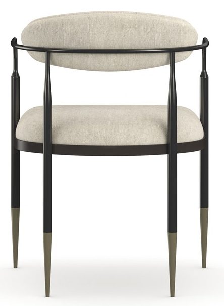 Product Description: Caracole CLA-024-271 Epoch Armchair - This armchair lives up to its memorable name. Epoch is a study in contrasts. The oval, curved back and tight seat feature Ivory woven performance fabric. The back and seat float in an open, dark frame in Deep Bronze metal enhanced with Champagne Gold metal ferrules. This is a piece that compliments classic or contemporary décor.