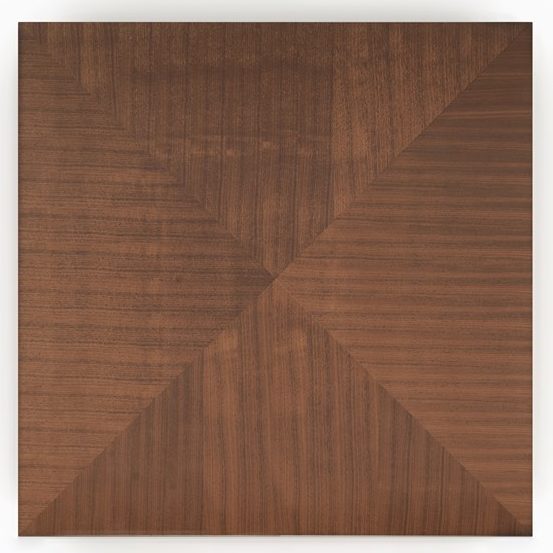Product Description: Caracole CLA-024-4017 Bello Square Cocktail Table - Bello is a beautiful celebration of a classic wood. Book-matched Retro Walnut veneers are hand-applied in intersecting triangles on the top of the table. The veneers seamlessly continue down the sides of the block-style table to a thin plinth with Retro Walnut running in a contracting direction. This is a substantial piece that pairs well with large sofas in sizeable seating areas. Designed and sized to fit modularly into Bello upholstery.