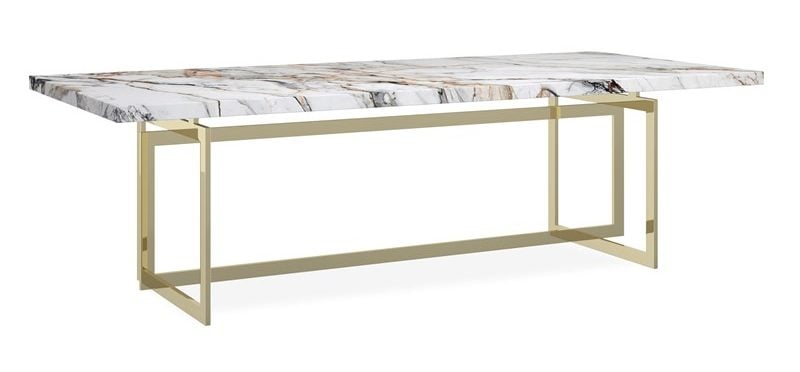 Product Description: Caracole CLA-424-2011D Wish You Were Here Table - Because not all dining rooms are created equal, there’s the Wish You Were Here table. An extraordinary example of organic luxe, it offers an ultra-impressive 100-inch stone tabletop. A bold, open geometric base finished in Whisper of Gold creates a mix of materials and brings in the glamour. With a dining room table this stunning, you’ll hesitate to cover it!