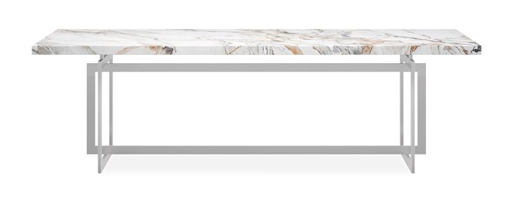 Product Description: Caracole CLA-424-2013D Wish You Were Here Table - Because not all dining rooms are created equal, there’s the Wish You Were Here table. An extraordinary example of organic luxe, it offers an ultra-impressive 100-inch stone tabletop. A bold, open geometric base finished in Lightly Brushed Chrome creates a mix of materials and brings in the glamour. With a dining room table this stunning, you’ll hesitate to cover it!