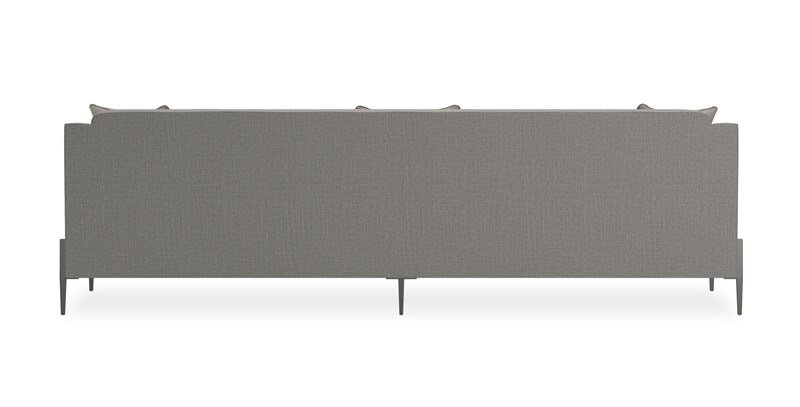 Product Description: Caracole M110-019-212-C 110 Remix Sofa - Updated and relevant, this fully upholstered sofa is suspended on thin, tapered metal legs in Smoked Stainless with decorative leg brackets and loose seat and back Blendown cushions. This piece features a track arm and lower back. This silhouette is upholstered to perfection in a grey wool blend woven with a contrasting tan leather welt.