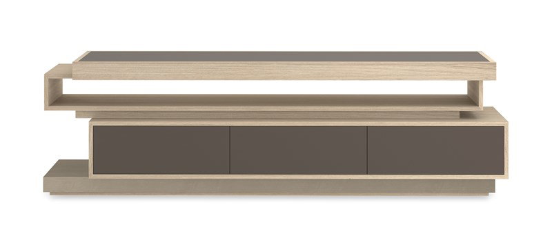 Product Description: Caracole M131-424-531 La Moda Media - Enhancing the “La Moda” suit of pieces, La Moda Media Console is distinguished by the architectural offset stacking of mixed materials. The top frame showcases Koto veneer wood finished in Dry Martini and inset with Smoked Bronze mirrored glass. The table tiers are Koto in Dry Martini with a Neutral Metallic finish. There is a three-drawer storage area with touch latches and Smoked Bronze mirrored glass fronts. The plinth base is finished in Neutral Metallic.