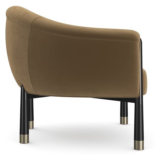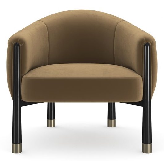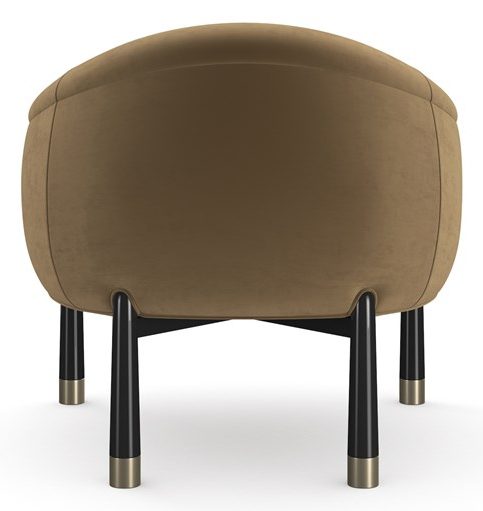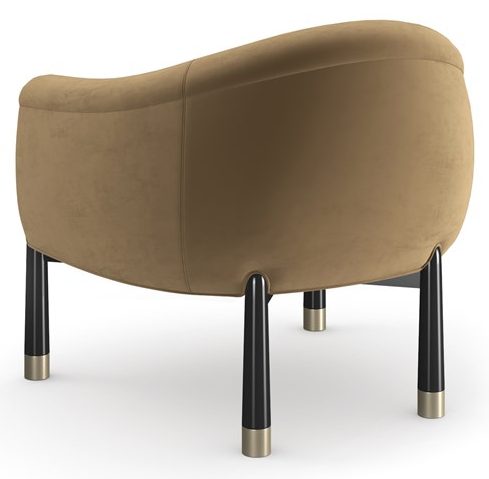 Product Description: Caracole UPH-024-034-B Baton Accent Chair - The Baton Accent Chair strikes an elegant cord. This contemporized barrel chair displays a generous curved camel back and tight seat that hugs you in an angora-like velvet around the chair. Shaped like a baton, the legs are tapered cones with wide Whisper of Gold metal feet.