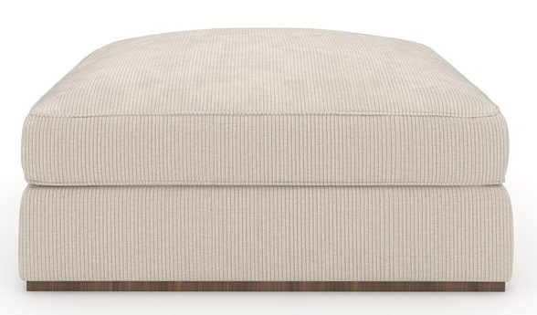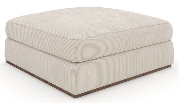 Product Description: Caracole UPH-024-041-B Bello Ottoman - This classic square ottoman affords comfortable seating in any room or when paired with other Bello sectional pieces. This piece is fully-upholstered in Oatmeal Wide Corduroy Velvet with a subtle Retro Walnut plinth base. The Springdown cushion is deep and plush.