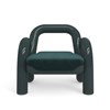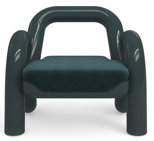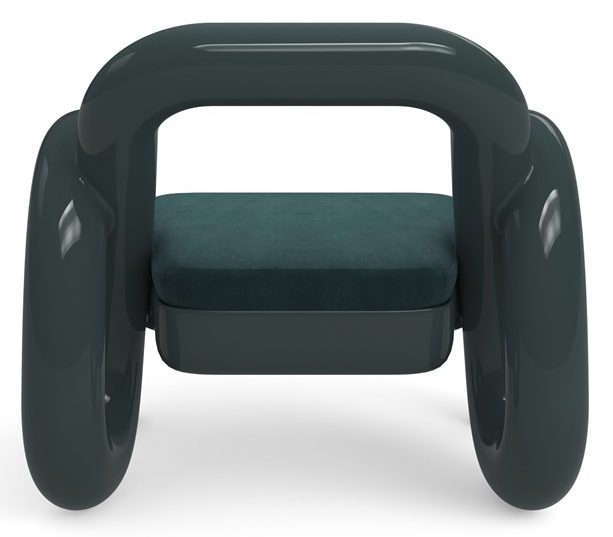 Product Description: Caracole UPH-024-131-A Gelee Accent Chair Apatite - Challenging traditional concepts of seating, add this piece of sculpture to your seating area. Wide extruded tubes of Apatite Gloss colored resin intertwine in a retro, slinky-like fashion, creating an open chair back with tubular curved side arms and legs. The piece is complemented by a tight upholstered seat in proprietary ultra-soft Peacock angora-like velvet.