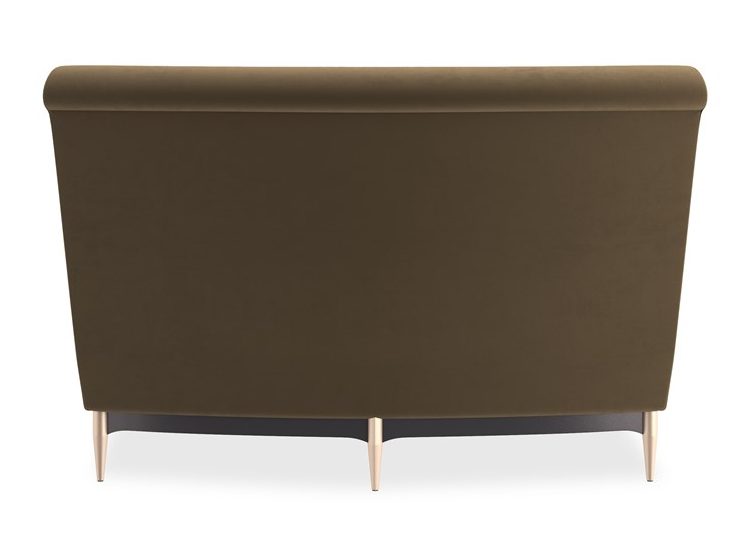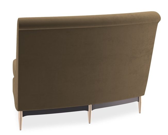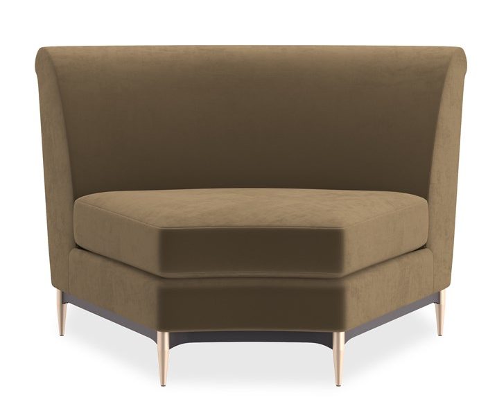 Product Description: Caracole UPH-424-WE1-F Three's Company Wedge - This regal sectional makes a dramatic showpiece that emanates glamour. Upholstered in velvet, its curved profile is complemented by sumptuous comfort. Reflecting the gracious elegance of the Hollywood Regency era, it features a shapely back button-tufted with vertical, cuff link-inspired gold metal bars. Its lower edge and outer arms are trimmed in Almost Black while its metal tapered feet are finished in Champagne Gold. Artful from edge to edge, this statement piece creates drama wherever it goes.