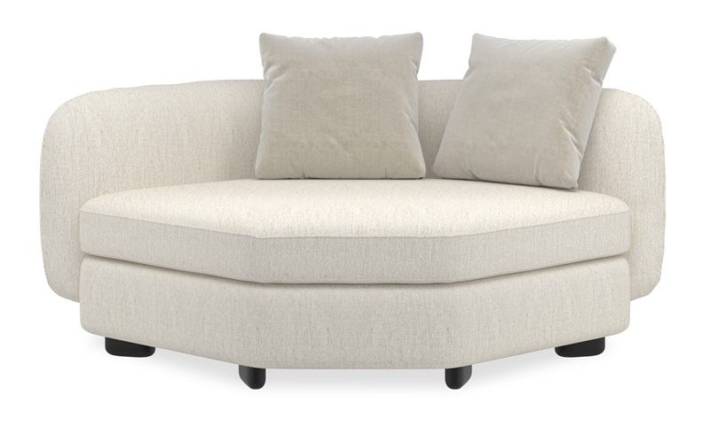 Product Description: Caracole UPH-424-WE2-A Lumi Wedge - The Lumi Wedge’s diamond shape is the perfect corner extender for the Lumi Sectional. You will want to sink into its ivory plushlystuffed seat. The back extends across the length of the piece. The body of the chaise is fully upholstered in a micro-ribbed linen blend, while two cushions feature an Ivory mohair and wool-blend velvet. The chair’s pegged feet pop from underneath in Almost Black.