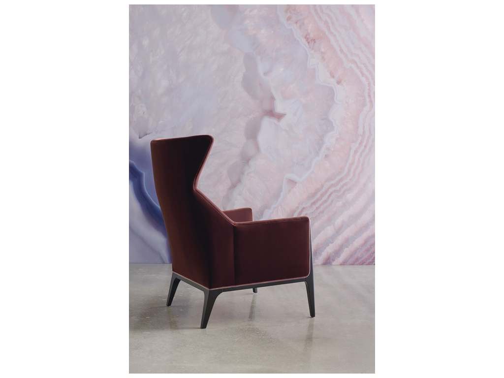 Product Description: Caracole M100-419-032-A Boundless Chair Accent Chair - Featuring style that knows no boundaries, this unique chair is rich in color, material and presence. It represents an artist's interpretation of the classic wing chair and is destined to shine in any setting. Its bold mo-velvet cover is featured in a rich shade of eggplant that shimmers and shines when it catches the light. A coordinating amethyst velvet welt adds another layer of distinction and is complemented with a Satin Ebony finish on the chair's wood trim. With the power to instantly modernize a space, this distinctive chair works beautifully on its own or as a pair across from a sofa or fireplace.