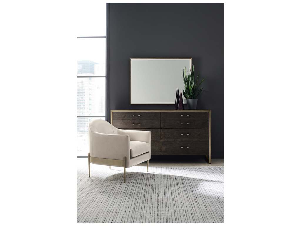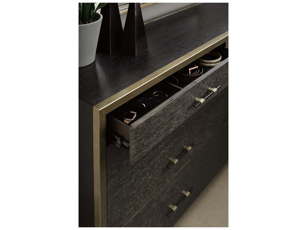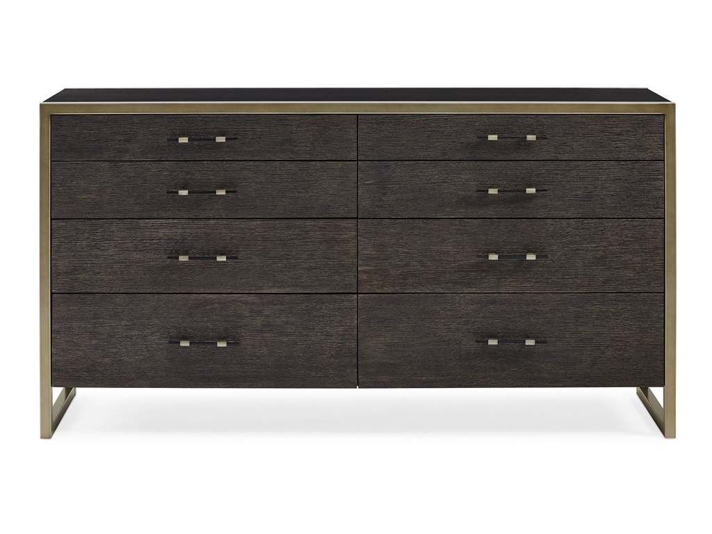 Product Description: Caracole M113-019-011 Modern Remix Double Dresser - If ever there was a dresser that could make you stop and do a double-take, this is the one. Bold in character, its modern mix of finishes and materials conveys understated urban flair. A rich Black Stained Ash finish wraps around its clean-lined silhouette while its drawer fronts are highlighted in Cerused Oak paired with coordinating custom hardware. With eight drawers, fully finished in Black Stained Ash, there's room for all of your wardrobe essentials. The character of this fashion-forward double dresser is further enhanced by its metal frame and trim finished in a softly reflective Bronze Metallic Paint.