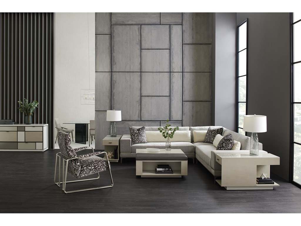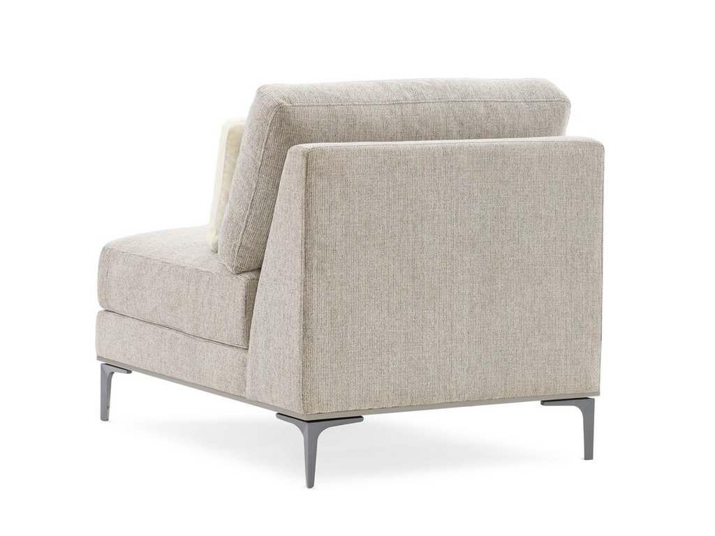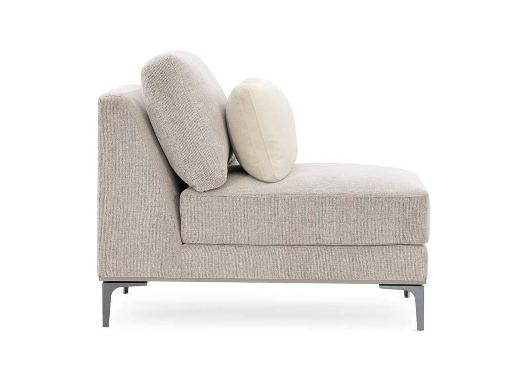 Product Description: Caracole M120-420-AC1-A Modern Expressions Armless Chair - The clean lines and smart angles of a Repetition modular sofa create a stylish sectional solution for modern seating. Long uninterrupted planes of finely tailored upholstered cushions create a sumptuous retreat with true simplicity of form. Repetition's frame is finished in London Fog while its metal legs wear Zinc Oxide-adding additional layers of luxe to its refined palette. Ultimately configurable, this stunning seating solution can be arranged to fit your space while reflecting your unique design perspective.