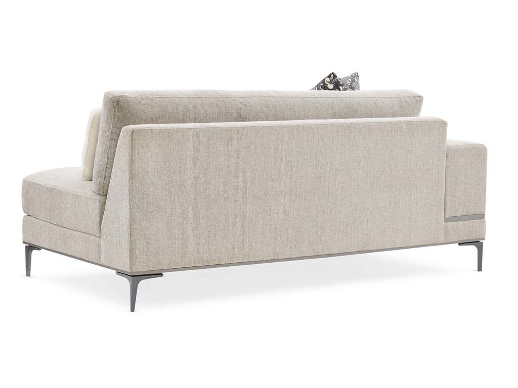 Product Description: Caracole M120-420-LL1-A Modern Expressions LAF Loveseat - The clean lines and smart angles of a Repetition modular sofa create a stylish sectional solution for modern seating. Long uninterrupted planes of finely tailored upholstered cushions create a sumptuous retreat with true simplicity of form. Repetition's frame is finished in London Fog while its metal legs wear Zinc Oxide-adding additional layers of luxe to its refined palette. Ultimately configurable, this stunning seating solution can be arranged to fit your space while reflecting your unique design perspective.