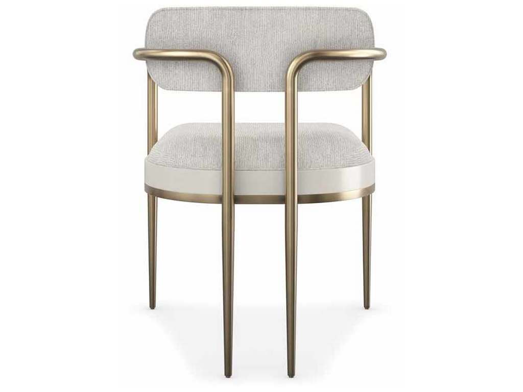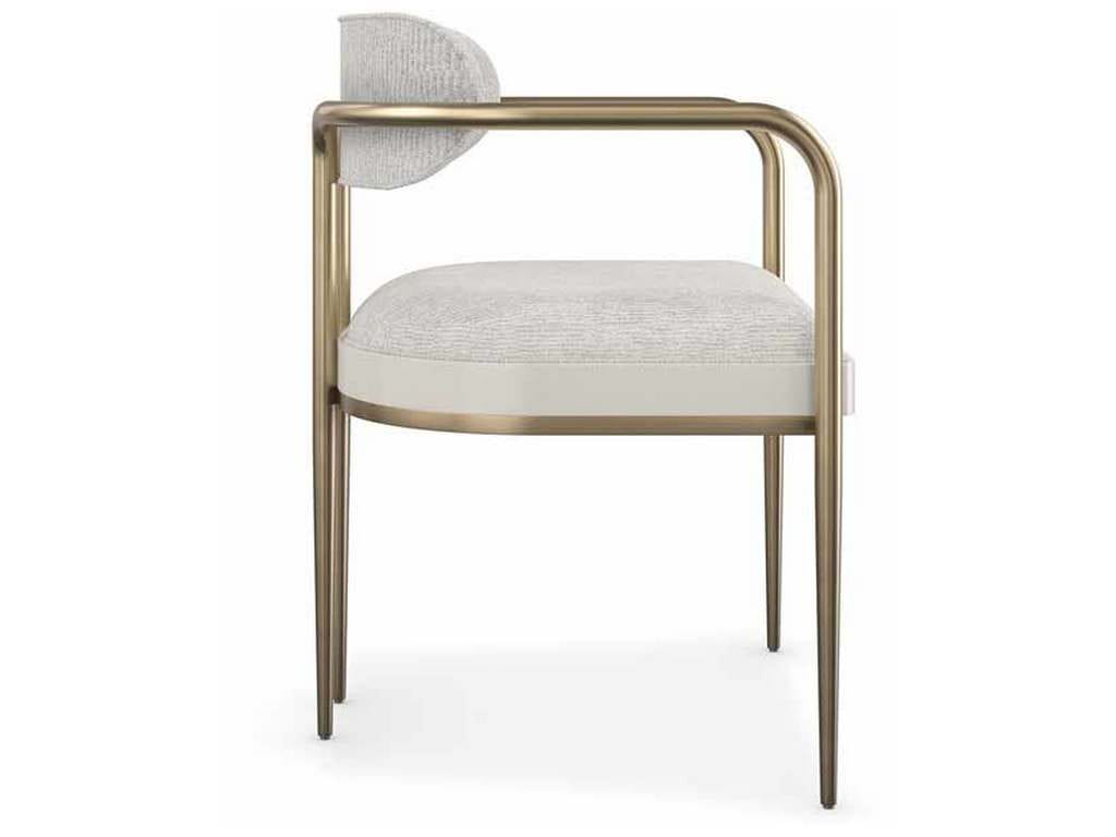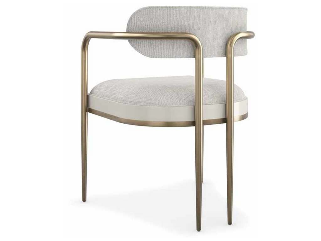 Product Description: Caracole M142-022-295 Emphasis Dining Chair - Light in scale with a sinewy silhouette, the Emphasis dining chair draws on parallel lines and an elegance of design to make a statement of modernity. From simplicity, comes sophistication: curved metal arms in Lucent Bronze and a seemingly floating, bowed back and wood-framed seat in a subtly contrasting, Almost White finish.