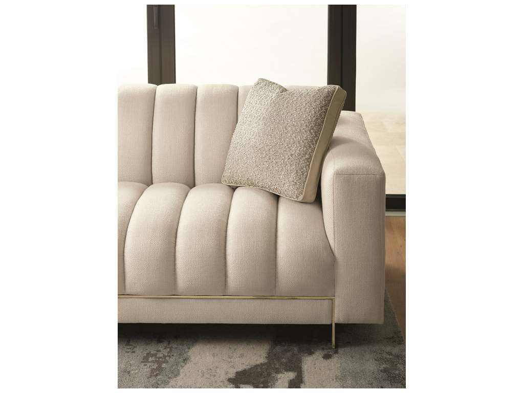 Product Description: Caracole SGU-017-211-A Signature Simpatico The Well Balanced Sofa - The Well-Balanced Sofa was inspired by Italian design and offers beautifully tailored channel tufting in a luxurious basket weave fabric in a shimmering Moonstone hue. This stylish vogue detailing and cosmopolitan silhouette makes this sofa the perfect focal point to build a spectacular room around in whichever chic city you're in across the globe. A tailored, thin gold detail is incorporated into the sofa frame. Its squared arms are the perfect height for resting or reading. Suspended off the ground by a continuous Majestic Gold framework, this sofa appears to be lighter than air. This sofa's sophisticated lines look beautiful when floating in an interior. Consider a pair of sofas in front of a fireplace or to enjoy a beautiful vista. It also pairs beautifully with the Well-Balanced Chair and Ottoman and our seriously stylish Svelte chairs.