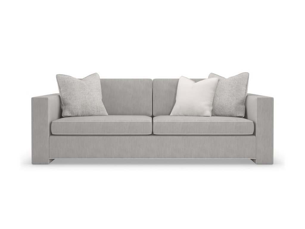 Product Description: Caracole UPH-019-016-B Caracole Classic Welt Played Sofa - Drawing inspiration from Fashion Week in Paris, the Welt Played sofa offers modern styling brought to life with warmth and texture. Tailored in a smoky taupe performance fabric, it features clean lines and linear forms outlined with contrasting welts in a cream velvet. For a fashionable finishing touch, we've added accent pillows in a textured herringbone pattern and a cream-colored velvet to match the welt. The resulting aesthetic is one of understated sophistication. Collection includes a matching chair and sleeper with three different colorway options.