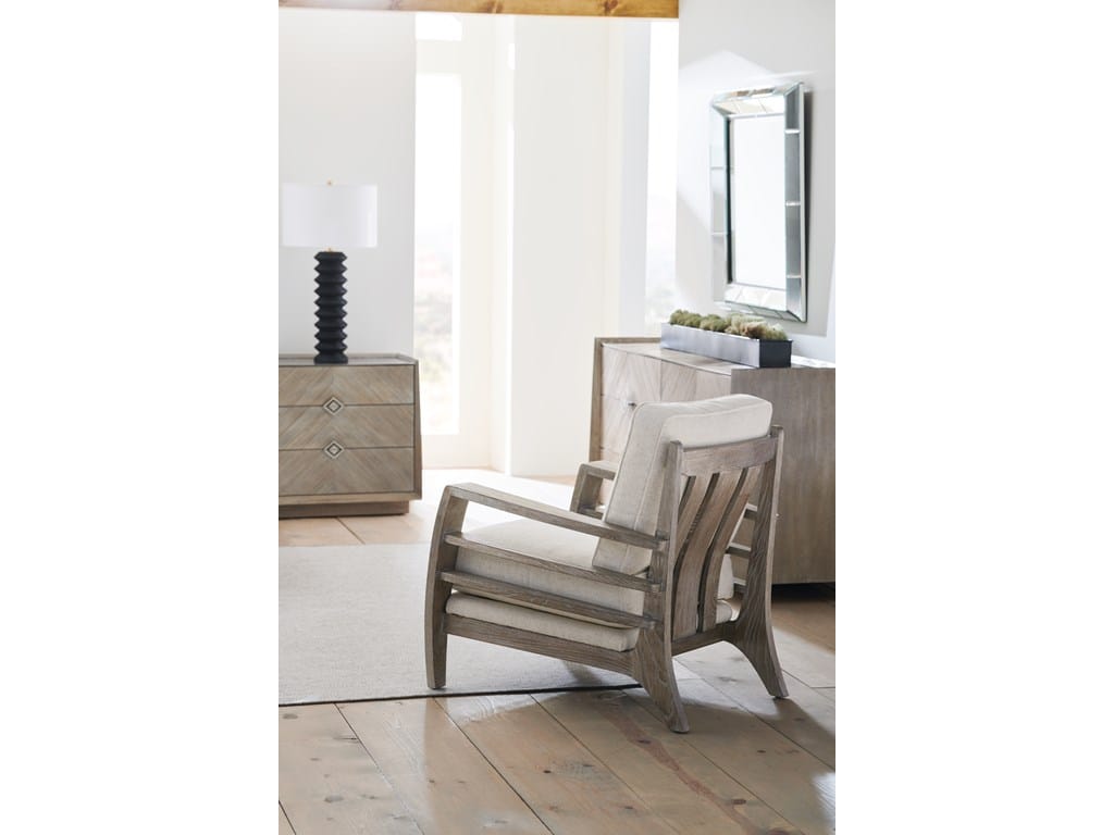 Product Description: Caracole UPH-019-135-A Caracole Classic Slatitude Accent Chair - Evoking the idea of a relaxing summer's evening spent drinking cool cocktails and listening to the lapping water at the sand's edge, this gorgeous chair is truly inspired. Its ingenious silhouette features open ladder arms and body-conforming back slats brought to life in an easygoing finish of Driftwood. Soft yet supportive cushions upholstered in a classic neutral make this accent chair as comfortable as it is captivating.