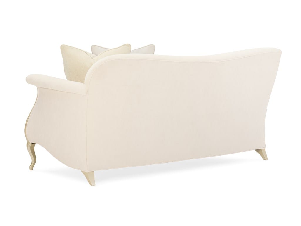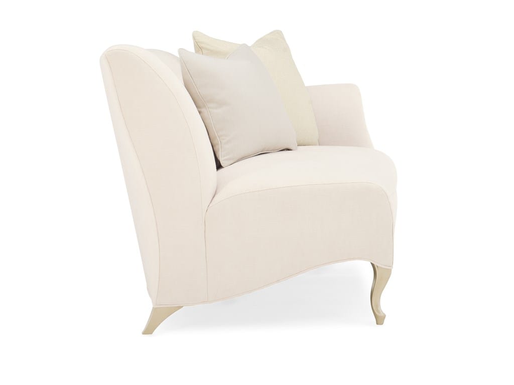 Product Description: Caracole UPH-019-RL2-B Caracole Classic Two to Tango RAF Loveseat - Our well-loved French-inspired Oui Oui sofa was the muse for this chic loveseat. Its classic shape was expanded to a two-piece sectional loveseat with scroll-flair arms and cabriole legs that create a statement piece as unique as your personal style. Sensuously curvy, it's fine tailoring is punctuated by button tufting and a soft mélange of nuanced neutral fabrics. A shimmering Pearl finish highlights its dramatic inset wood trim and curving legs.
