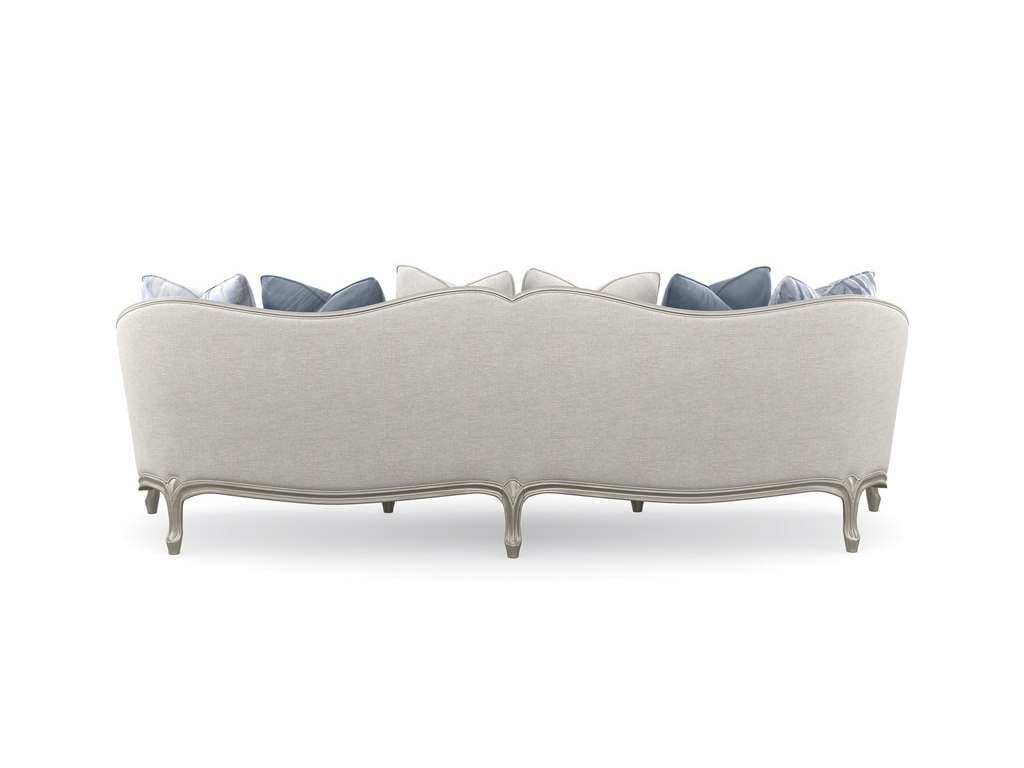 Product Description: Caracole UPH-020-111-A Caracole Classic Special Invitation Sofa - With a classic silhouette influenced by French elegance, this sofa makes a gracious statement in a soothing oatmeal-colored performance fabric. Soft curves invite the eye, while cabriole legs and ribbon-like wood trim add impact in a metallic finish. Velvety pillows in varying shades of blue lend a look that's refined, yet stately. Pairs perfectly with the Special Invitation chair
