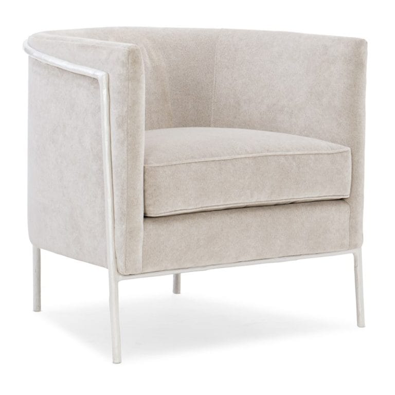 A faux bois design gives this barrel chair its signature character, rendering it a natural topic of conversation for all to enjoy. Channeling an organic luxe vibe, it's crafted of cast metal and highlighted by a multi-layer finish of Oyster complemented by an upholstered seat and back tailored in a rich neutral fabric. Its refined appeal fits any design plan and invites a moment for repose