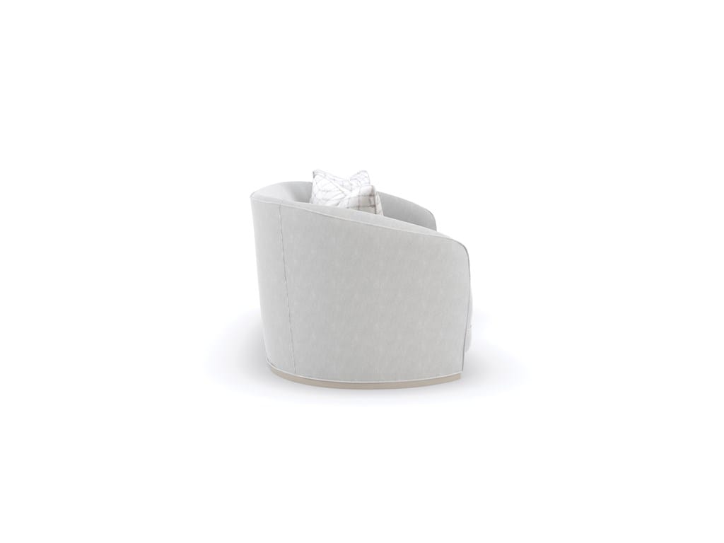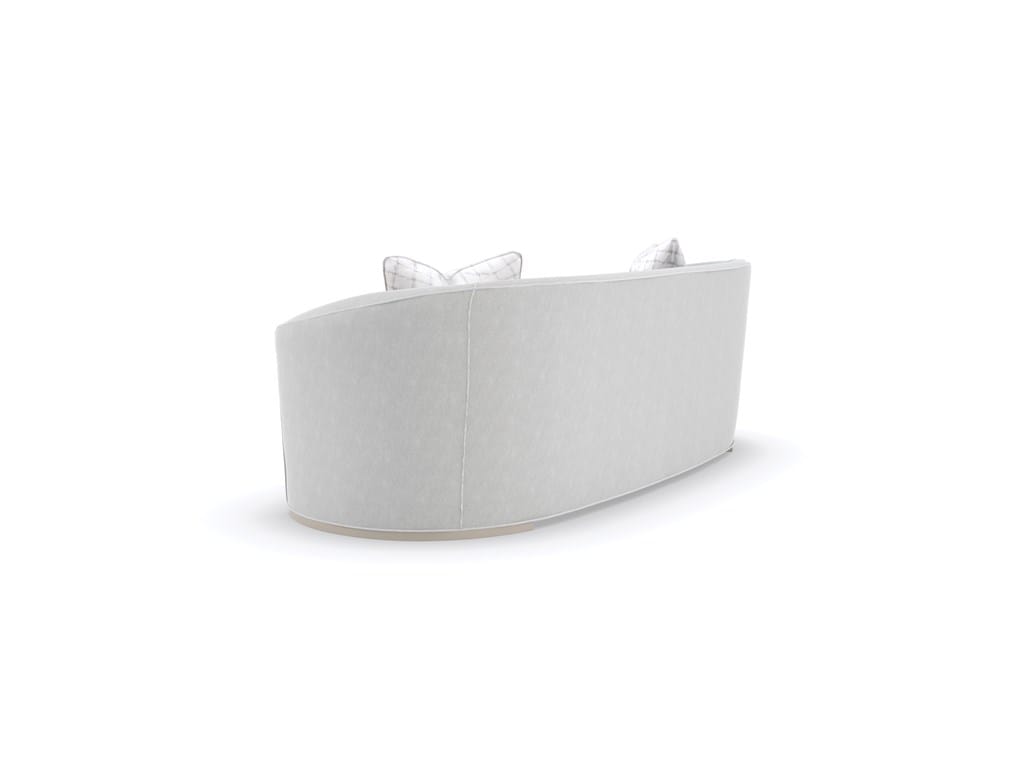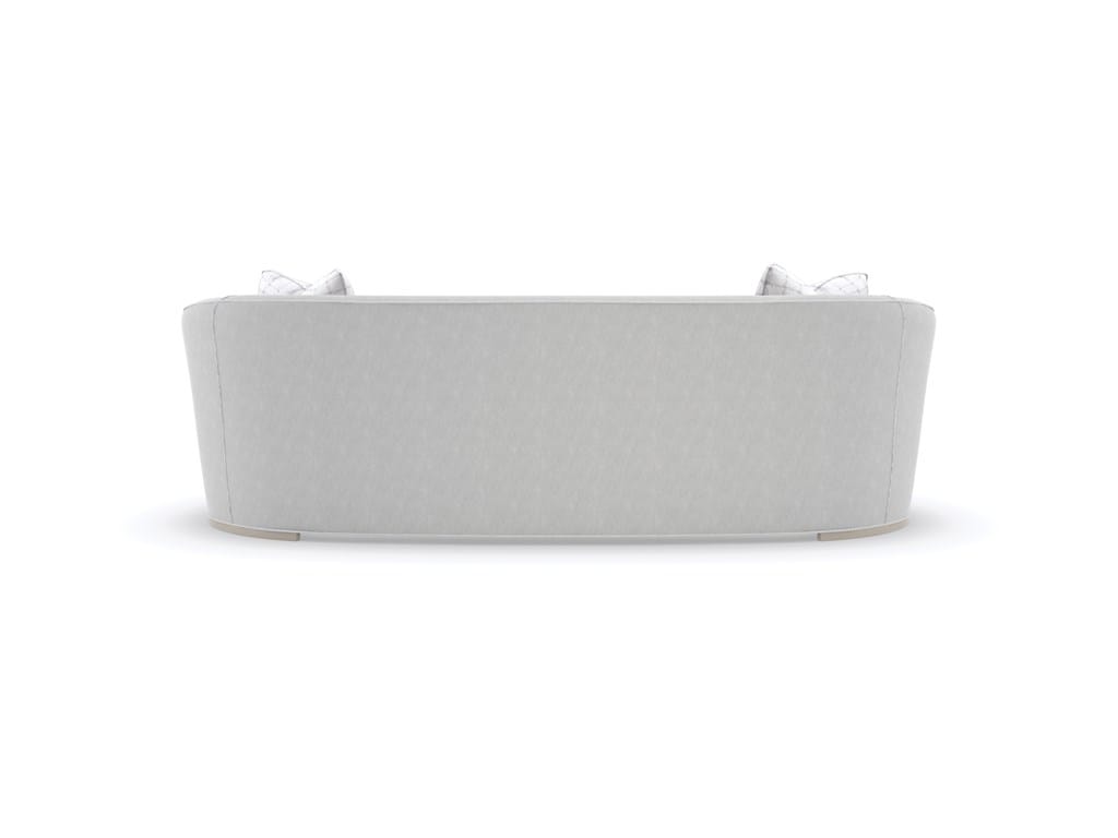 Product Description: Caracole UPH-421-011-A Ahead Of The Curve Sofa - With an enveloping silhouette, this inviting sofa embodies comfort and easygoing elegance. Its subtly curved back and bowed bench seat are hand-tailored in a micro-chenille performance fabric, woven with metallic thread for a hint of shimmer. Delicate plinth legs lend balance and a sophisticated detail in a Matte Pearl finish. Woven satin checkerboard accent pillows and an extra-long lumbar pillow in a faux shearling create contrast and touchable texture.