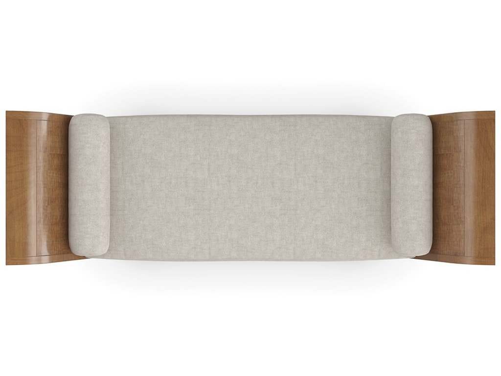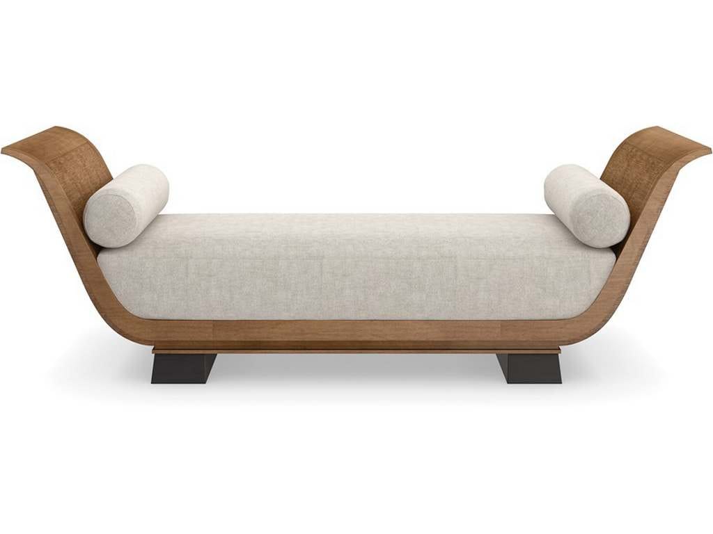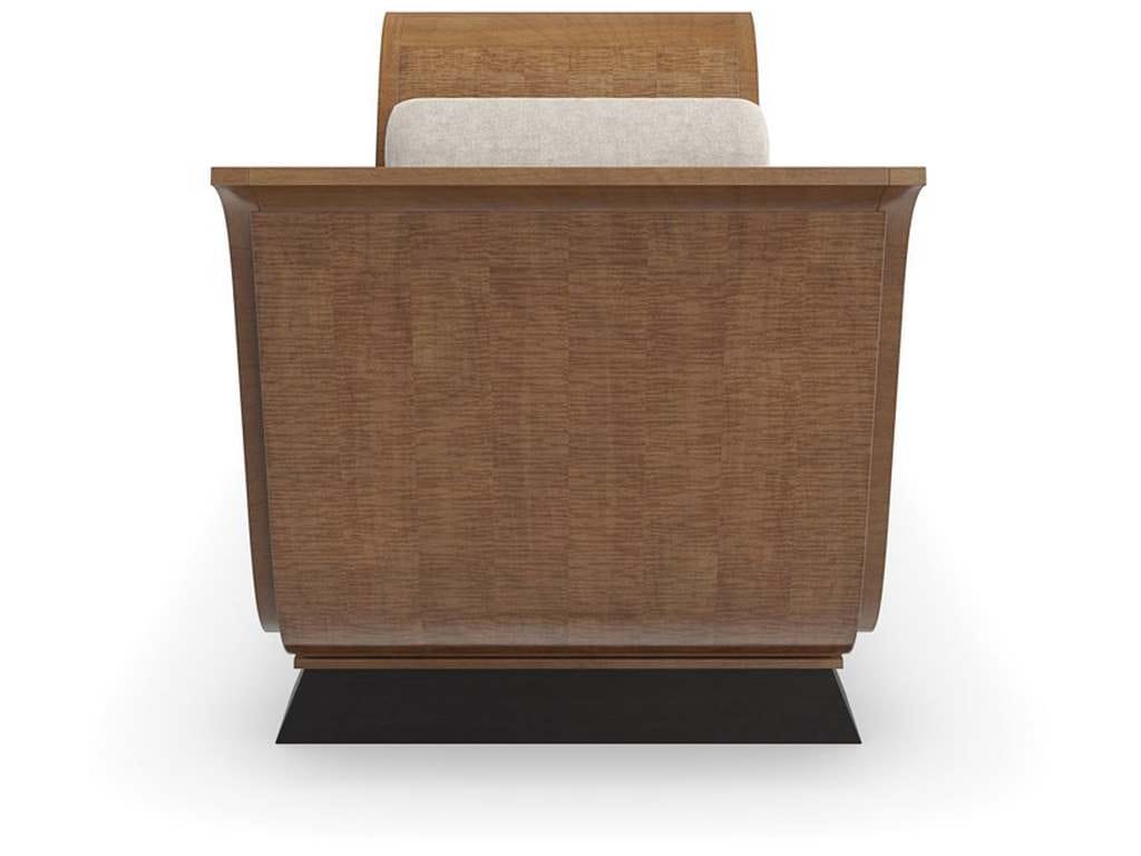 Product Description: Caracole UPH-423-071-A Infinity Chaise - With a nod to Greek and Roman antiquity, this chaise introduces lounge-like comfort and a classic undertone. Its daybed form recalls pieces used throughout history to lounge comfortably yet respectably in the presence of guests. Dressed in a light-toned linen with matching bolster pillows, warmly contrasted by an arcing frame in Toasted Sycamore and plinth legs in a rich Charred Bark finish. Style in a seating area designed for conversations or use it to separate two designated spaces in a room.