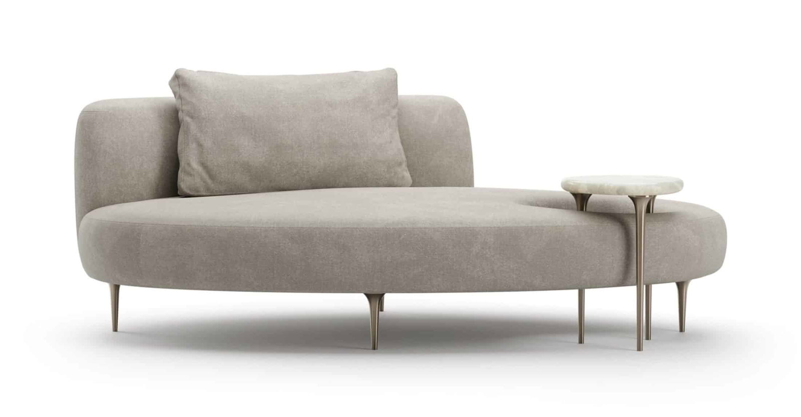 Product Description: Caracole UPH-425V-071-A Echo Lounge - The Echo Lounge combines plush upholstery in pale grey mohair with Champagne Gold metal legs and table supports. Its integrated accent table crafted from luxurious Gray Onyx stone provides sophisticated functionality, making it an exquisite addition to your living area.