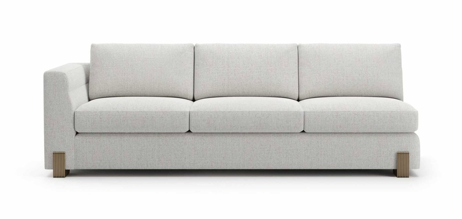 Product Description: Caracole UPH-425V-LS8-A Counter Balance LAF Sofa Birch - Experience serene sophistication with the Counter Balance LAF Sofa. Dressed in an oatmeal melange woven fabric with subtle rust threading and supported by finely crafted Brushed Gold legs, this sofa creates an irresistible blend of modernity and relaxation.