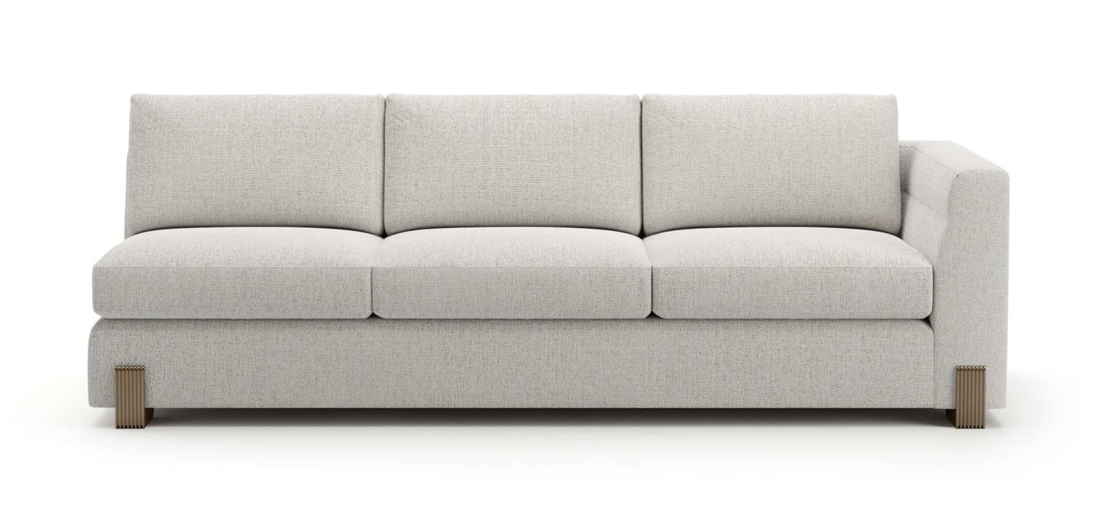 Product Description: Caracole UPH-425V-RS8-A Counter Balance RAF Sofa Birch - Refine your living space with the Counter Balance RAF Sofa, elegantly upholstered in an oatmeal melange woven fabric with subtle rust threading. Accented by sleek Brushed Gold metal legs, it offers a perfect balance of contemporary elegance and plush comfort.