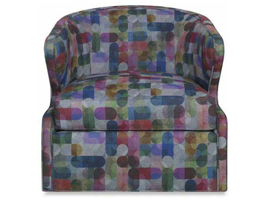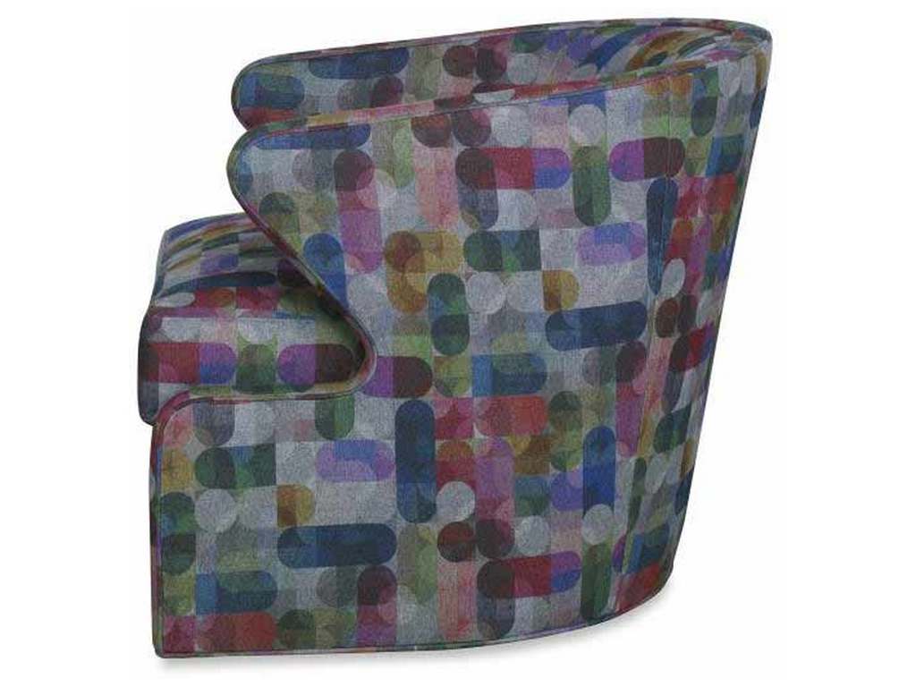Product Description: Century Furniture 11-2172 Sansa Chair - Sansa is a contemporized barrel back chair featuring a bordered cutback arm trimmed with two rows of welt and banded upholstered base. Available in both stationary and swivel.