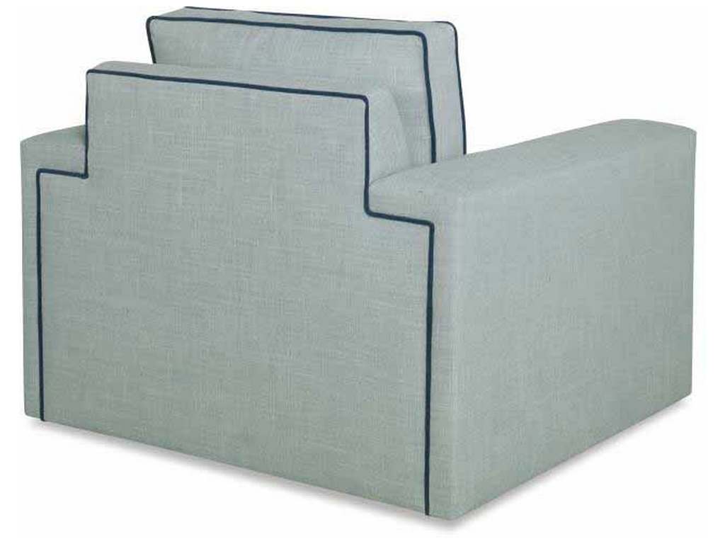 Product Description: Century Furniture 11-2175 Lucas Chair - The Lucas Swivel Chair is a modern angular form with envelope arms that wrap up and over the seat cushion and a low back making it the perfect chair for floating in a room where seeing across the space is important. The welt lines run up the middle of the arms, down the inside of the frame, and around the back of the chair giving it great visual interest from all sides. Lucas is also available as a swivel chair and large scale sofa.