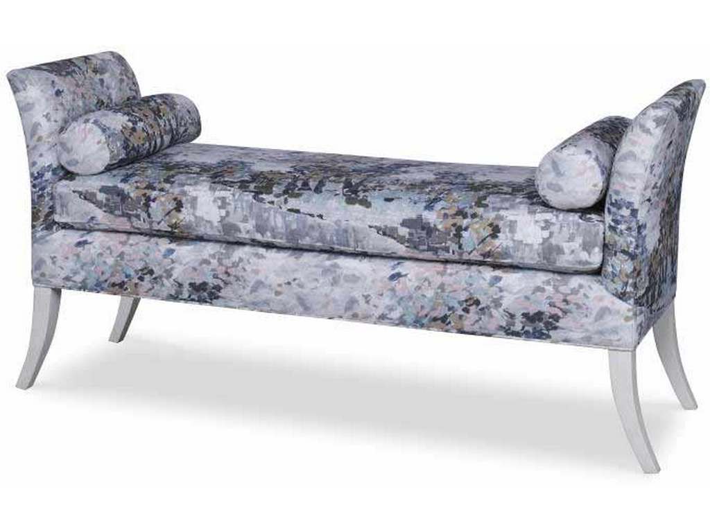 Product Description: Century Furniture 33-2176 Blaire Bench - Blaire bench has beautiful lines with a tapered flared arm accented with a pair of round bolster pillows. It has a single seat cushion and is finished off with thin saber wood legs. Perfect at the foot of the bed or placed in a foyer.