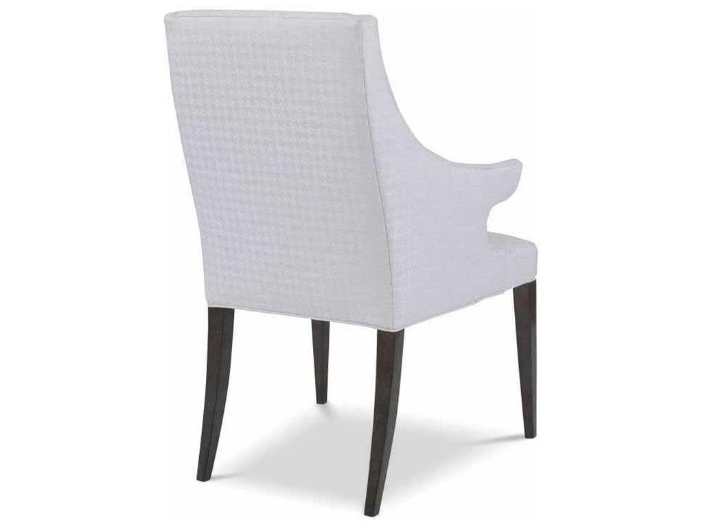 Product Description: Century Furniture 3483A Eva Arm Chair - Boasts a curved backrest and tapered legs with upholstered armrests. Features a comfortable seat cushion and a classic design. Suitable for dining rooms or as an accent chair.