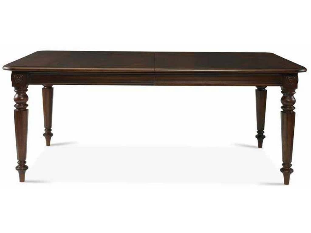 Product Description: Century Furniture 36H-301 Godfrey Dining Table - 36H Cognac finish. Maximum extension: 118" with two 21" aproned leaves.