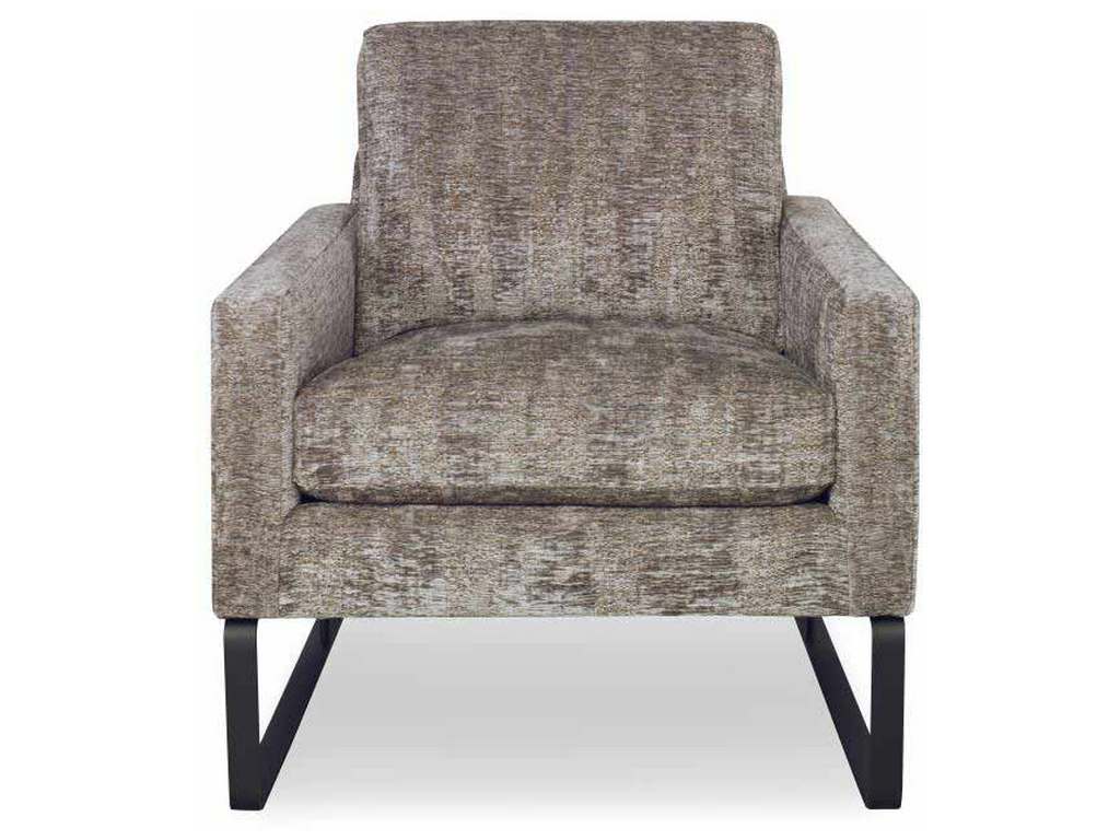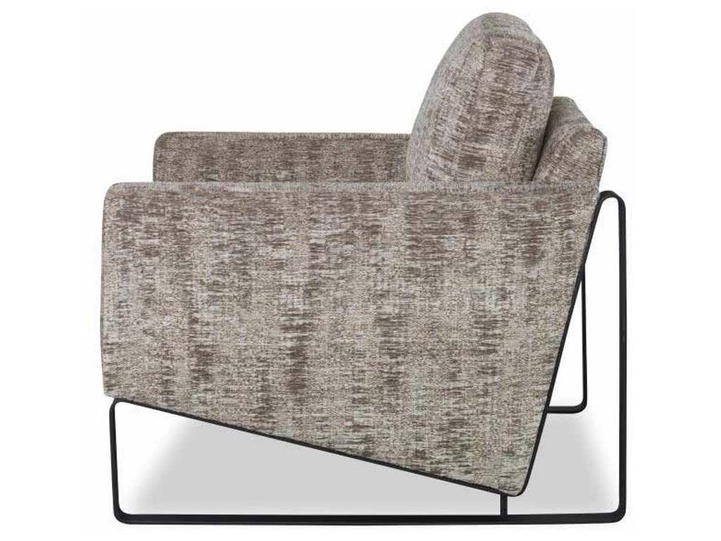Product Description: Century Furniture 3989 Dobie Metal Chair - The Dobie is a transitional design. It features a bronze hair pin turn iron base that races down the back and rises with the pitch of the seat, narrow track arms flank the loose weltless box seat and back cushion. No finish options on the metal base.