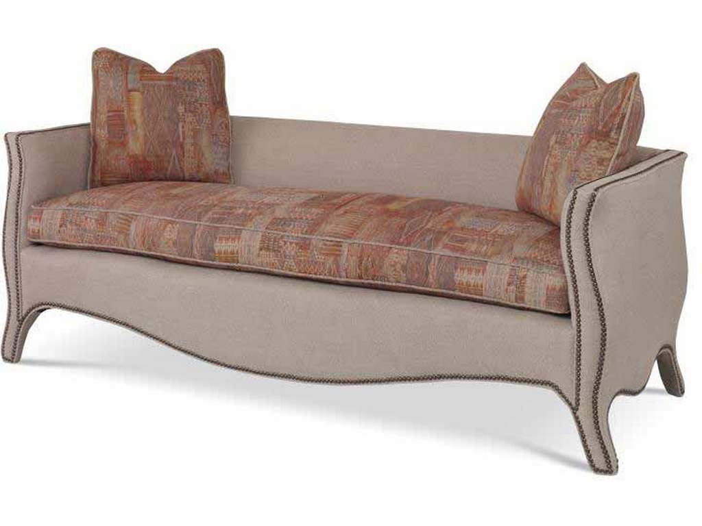 Product Description: Century Furniture 44-2112 Courbet Settee - Crafted from solid cherry wood with a warm brown stain. Offers a blend of traditional and contemporary design elements. Perfect for displaying decorative items or holding a table lamp.